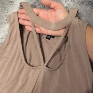 Tan cutout dress! Very stylish and cute addition to any closet! Hits right below the knee on me, I'm 5 ft 3in