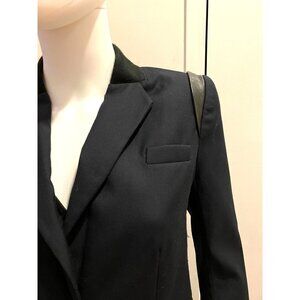 Cut25 by Yigal Azrouel vintage 3/4 sleeve navy blazer with black leather, S2