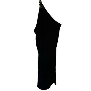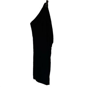 Cut25 Black One Shoulder Leather Buckle Strap Draped Midi Dress Size Small