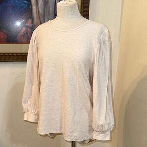 So cute and comfy! Nice women's linen/cotton pale pink top with a relaxed fit and stylish design. Perfect for casual occasions. The bracelet sleeve is a nice touch. Excellent condition!