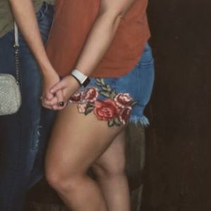 Cute summer staple. Cut off rose detailed, high rise shorts. Fit smaller. In the pic I am a 13/14 but fit very loose. So more of a size 16 rather than 18. Super stretch though to fit up to size 18.