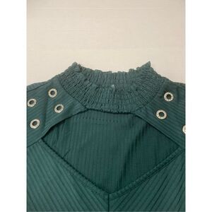 Ladies super cute hunter green high mock neck grommet detail cut out 3/4 sleeve plus size blouse. New with tags. Ladies size 2X. Excellent condition.