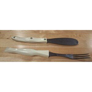 Up for sale is a Cutco Spatula Spreader Knife (#1768) paired with a Cutco Serving Fork (#1726 JB), both with pearl white handles. These are authentic Cutco pieces, made in the USA, and known for their durability, balance, and lifetime guarantee.