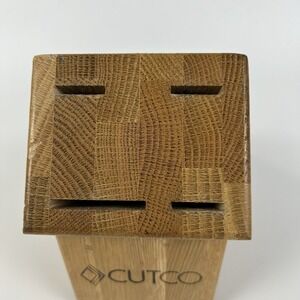 Keep your kitchen organized and stylish with this Cutco Wood Knife Block. Made of high-quality oak wood in a beautiful honey oak color, this 4-slot block is perfect for storing your knives. The block features easy-to-clean materials and a knife holder, making it a practical addition to any kitchen.