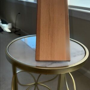 Sleek Cutco knife block. Modern angled design. Smooth wood finish. missing rubber divot. Like New.