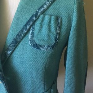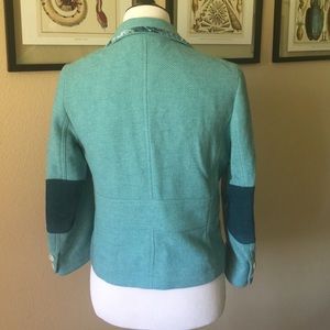 Turquoise cute blazer with 3/4 length sleeve and crushed velvet piping and corduroy elbow patches.