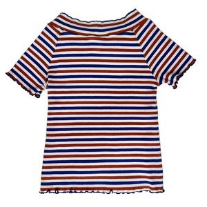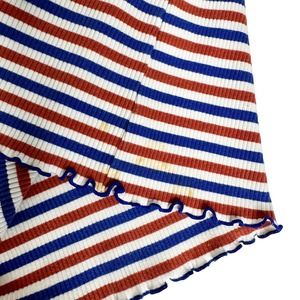 Cute 60s / 70s Colored Striped Lettuce Trim Casual Blouse Top XS