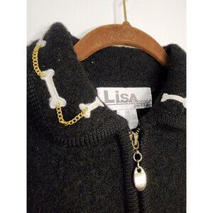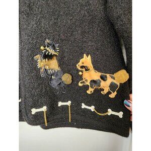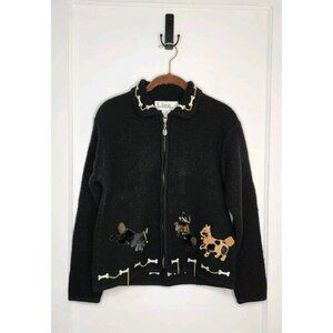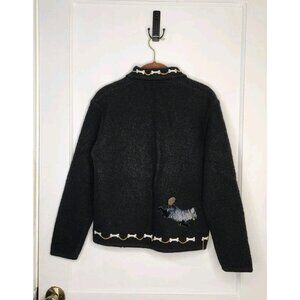 Cute 90s Boiled Wool Full Zip Cardigan Dogs Bones Lisa International Sz Petite M