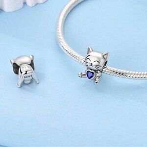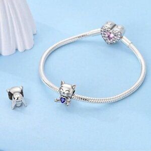 Cute 925 Sterling Silver Cat Hug Heart Charm