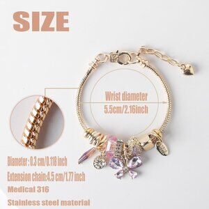 Features: Made with high-quality stainless steel chain, charming alloy pendants, and shiny glass beads. The bracelet is lightweight, comfortable, and easy to adjust, making it perfect for daily wear. Its cute cartoon and butterfly charms make it a standout piece that’s ideal for showing off your personal style.