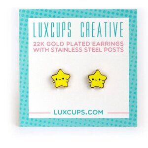 Cute Adorable Kawaii Smiling Star Earrings With 22K Gold Plated