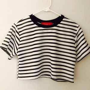 Super cute stripped Akira crop top. Looks great with high waisted jeans