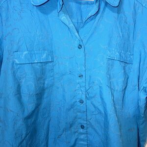Cute Allison Daley Shirt Womens Teal Shiny Sheer Collared Button Up Top-Size 2xl.