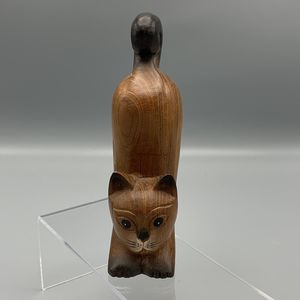 Cute Arched Back Brown Cat Hand Carved Solid Piece of Wood