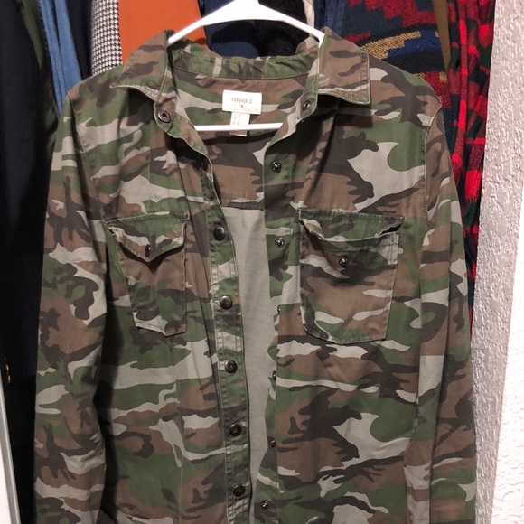 Army print jacket from Forever 21. Dress it down with jeans and sneakers or dress it up with a cute skirt or black dress.