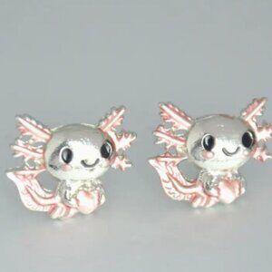 This is a Cute Axolotl Stud Light Pink Enamel Studs Women's Fashion Earrings set.