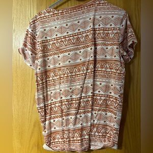 Cute Aztec pattern basic style short sleeve tee. Rust colored pattern. Medium