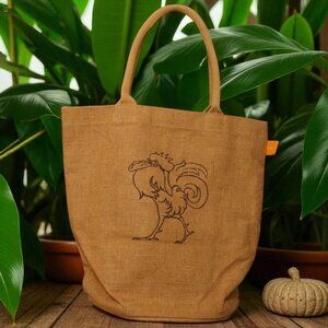 Cute! BRINGIT Reusable Burlap Tote Bag with Rooster Print