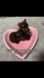 Adorable black cat figurine with a pink heart-shaped dish. Includes colorful accessories for decoration.