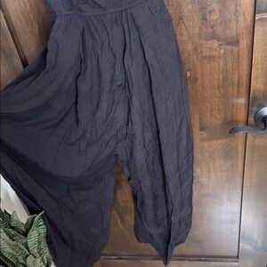 Cute Black Jumpsuit with Spaghetti Straps open back parachute pants Size L
