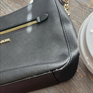 Getting rid of my everyday bag. Its used slightly. The zippers is a bit worn (can be seen in pictures). Can be a crossbody (comes with strap) or a handheld shoulder bag. No tears but minor scratches. The gold hardware is a bit worn out.