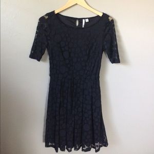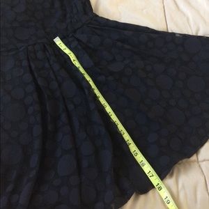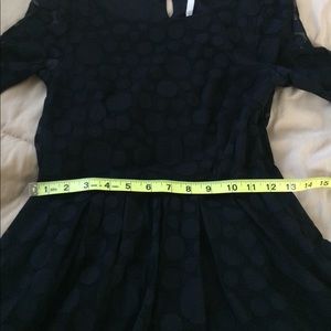 Lauren Conrad black Polka Dot dress with mesh overlay. Good for parties, graduations and any festive occasion! Pre-owned, but lots of life left; slight deo marks under arms and some pilling. So adorable, I hate to part, but it's just too small now. 13" waist, 18" from waist to hem, full skirt, fairly stretchy. Machine washable.