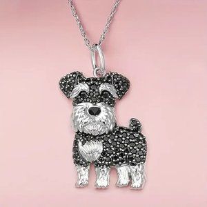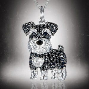 Cute Black Schnauzer Sparkling Rhinestone Pet Pendant Necklace