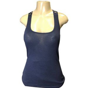 Cute Boho Navy Blue Crochet Back stretch tank top