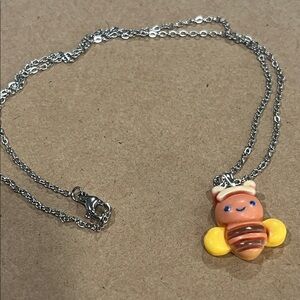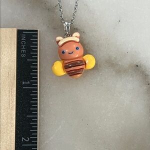 Brighten up your child's outfit with this adorable bumblebee necklace. Featuring cheerful yellow and brown colors, it's a delightful accessory for any occasion.