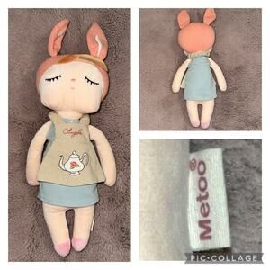 🧒🏼 Metoo Angela Plush Stuffed Doll Cloth Dress Pink Bunny Embroidered Apron Teapot 17”