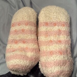 Adorable bunny slippers with a fluffy texture. Features pink and cream colors with cute bunny ears and face.