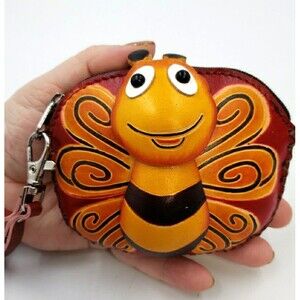 Handmade Leather Bee Butterfly Wristlet Coin Purse Sweet, Sunny & Full of Charm