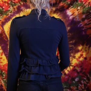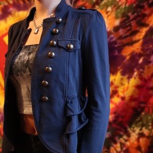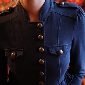 Really cute and stylish sweater with buttons and ruching. Dark navy blue with gold buttons. Size XS. 100% cotton