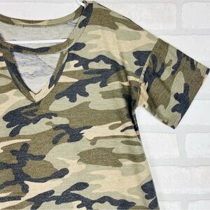 Cute Camo Tee with Keyhole Front and Oversized Comfy Fit Size S/M. Tag says small but fits medium, please see measurements! Perfect for daily wear comfy, work, errands, travel. Soft, looks great. Gentle use with no stains or rips. 19” chest, 26” length. #827 6.3
