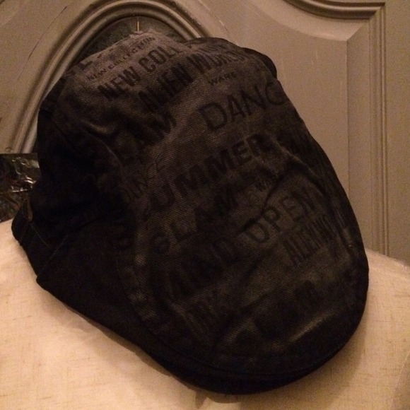 Black Page boy Type Cap! Lots of Words printed on this! Really Cute!!! One Sz!!!