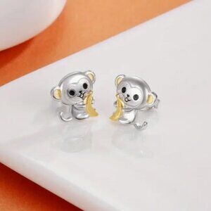 This is a Cute Cartoon Monkey & Banana Stud Enamel Fashion Earrings set.