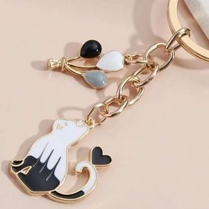 Cute Cat Charm Keychain Golden Balloons Pet Lover Kitten Kitty Heart Keyfob Gift