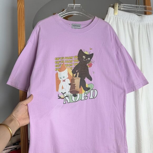 Cute Cat Graphic Tee Lavender Purple Oversized Soft