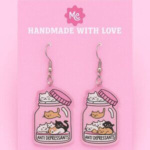 Cute Cat Jar Earrings | Anti Depressants Kitty Statement Jewelry
