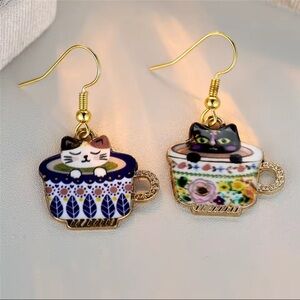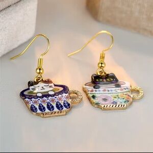 Cute Cat in Teacup Earrings | Anthropologie Inspired Whimsical Jewelry