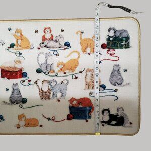 Adorable cat-themed mat, 20"x30", designed for feline enthusiasts. Could be used in the bathroom, kitchen, or as a door mat. Soft and absorbent, with non-slip rubber backing.