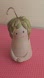Adorable ceramic figurine with green hair and a smiling face. Perfect for home decor for the holidays. her little feet underneath make her a bell. she'd look great on the tree or hanging separately on her own.