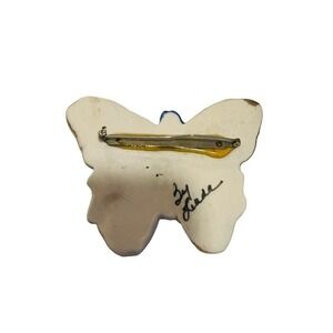 Elevate your collection with this exquisite ceramic butterfly brooch signed by the artist. Its charm stands out whether integrated into a larger design or showcased on its own. It is a beautiful piece.