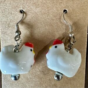 Handmade Ceramic Chicken Earrings 🐣 – Farmcore Perfection