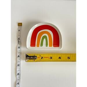This sweet ceramic trinket dish features a painted rainbow pattern
