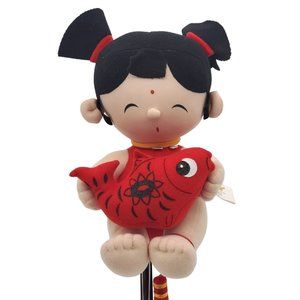 Cute Chinese Wind Doll Girl Holding Fish Plush 10 Inch Anime Cartoon Red Black