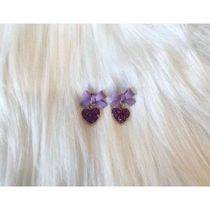 Cute Coquette Girly Purple Glitter Heart Shaped Dangle Earrings NEW