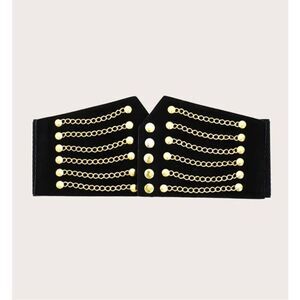 Ladies super cute black elastic corset style belt with gold embellishments. New with tags. Fits up to 42” waist. One size fits most.