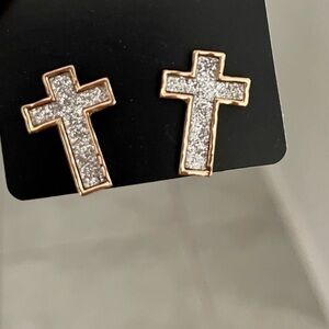 Cute!!! Cross Shaped Earrings. Silver trimmed in gold or All Gold. Pierced