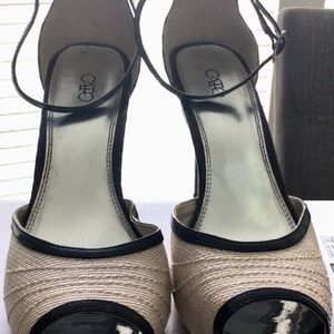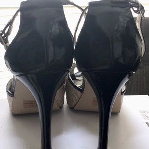 Cute open toe beige and black high heeled sandal. These are so cute I thought twice about selling! I know that you will love them too. You can dress them up or dress them casually! It will be all up to you!